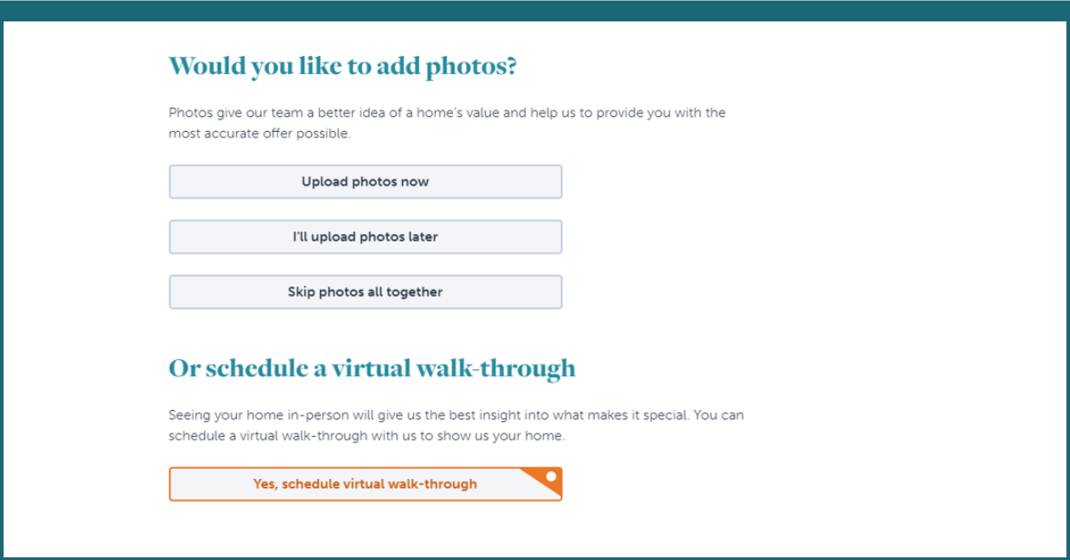 Now, when you request an offer at Offerpad.com, you have the option to schedule a video tour, instead of uploading recent images – sellers who provide home images are 40% more likely to sell to Offerpad. If you select this option, you’ll receive a quick call from an Offerpad Solutions Advisor, requesting to schedule a time for your video tour.