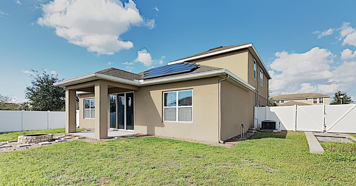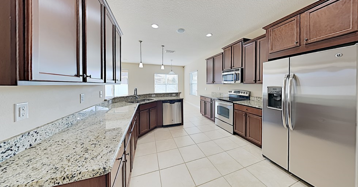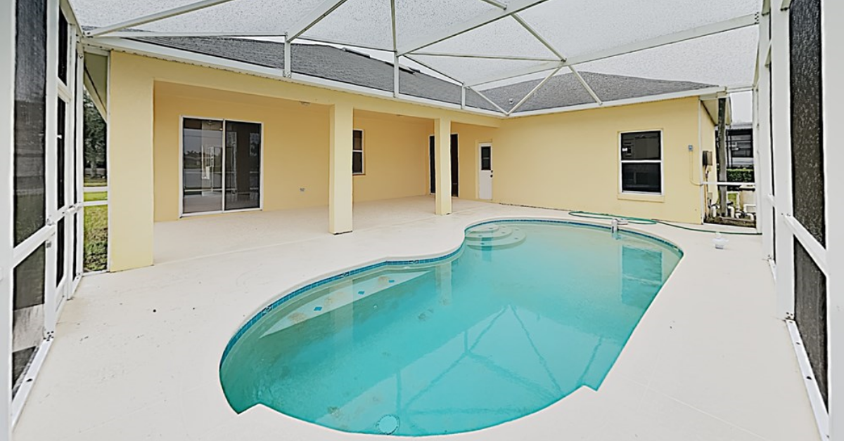 Finally, we have another beautiful single-story three-bedroom home located in Kissimmee that’s close to endless shopping and dining opportunities. This home includes a split floor plan with fresh interior paint, brand new vinyl flooring, and new carpet in the bedrooms. The spacious living room greets you upon entry and opens up to the kitchen, outfit with accents including new stainless steel appliances and a breakfast bar. The master bedroom includes a generous walk-in closet and ensuite with dual vanity. You’ll love the soaking tub and separate shower here, too. The enclosed pool offers backyard views to the nearby lake, it’s totally serene!