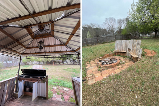 Outside, there were grading issues to improve drainage around the home’s foundation. The tiled front porch needed repairs and a new slab was poured for the back porch. A firepit area in the backyard and non-compliant “covered” wood decking also had to be removed.