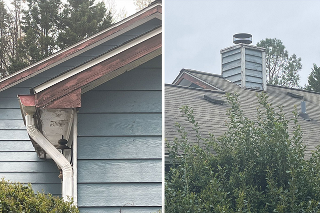 While just 5-10 years old and not ready to be replaced, the roof did require work, too. Rust damage around the chimney cap and boots was replaced. Flashing needed to be fixed before giving everything a thorough chemical clean. There was no vapor barrier and improper venting in the attic that needed to be corrected. Additional insulation was also needed, which was blown in.