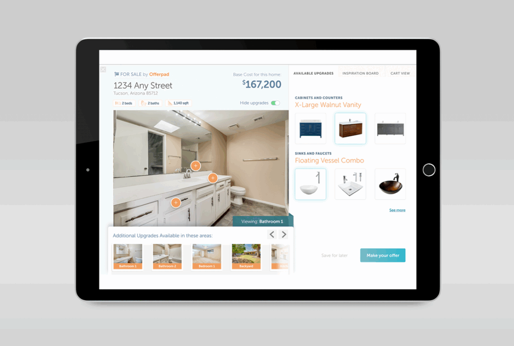 “Imagine this: You find one of many Offerpad move-in ready homes and immediately you’re able to start personalizing it. By simply clicking on the kitchen photos, you have three different options for lighting kits. You move to flooring and decide, ‘do I want hard wood or tile?’. You sort through images of the counter tops and select the grey quartz you always dreamed of. Offerpad is making this a reality,” said Read.